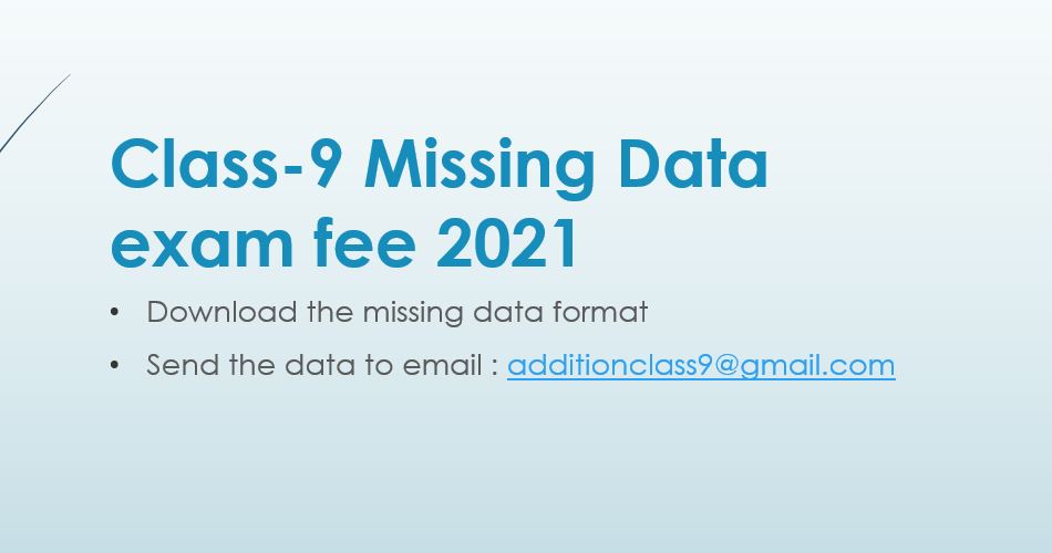 In case if there are any missing data for class-9 Exam fee, schools are requested to send the details of the missing students in the given format to additionclass9@gmail.com