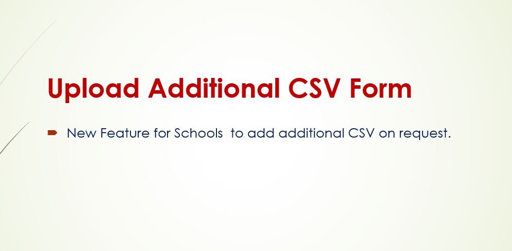 In case if the school has missed out any student/teacher record, where the original CSV is already approved or CSV payment is already done. There is a new feature or provision now to add the missing data of the CSV.