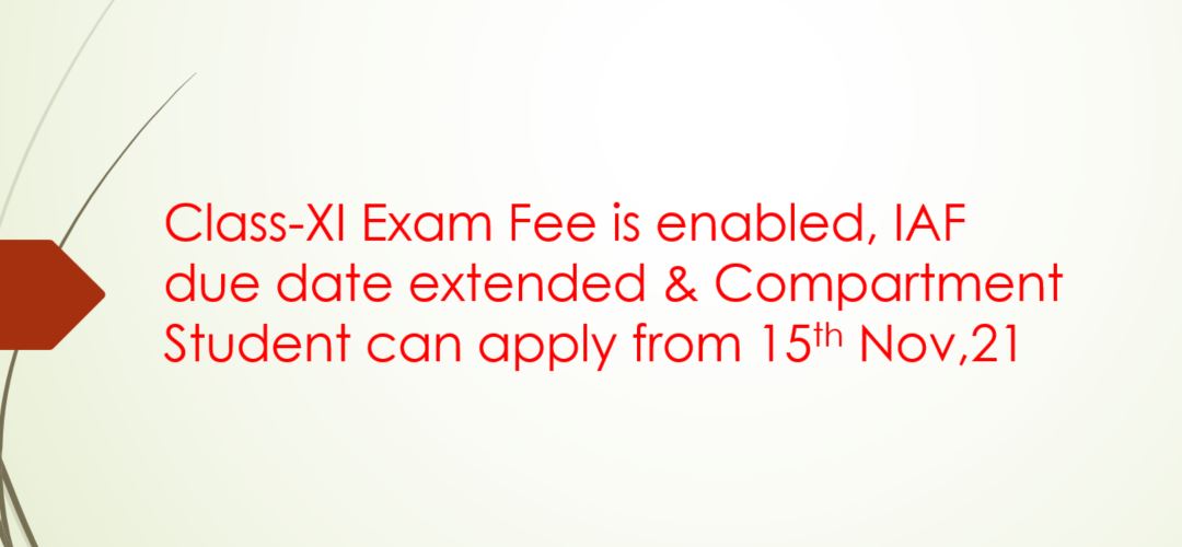 Cl-XI Exam Fee, IAF due date extended & Compartment students apply from 15th Nov,21